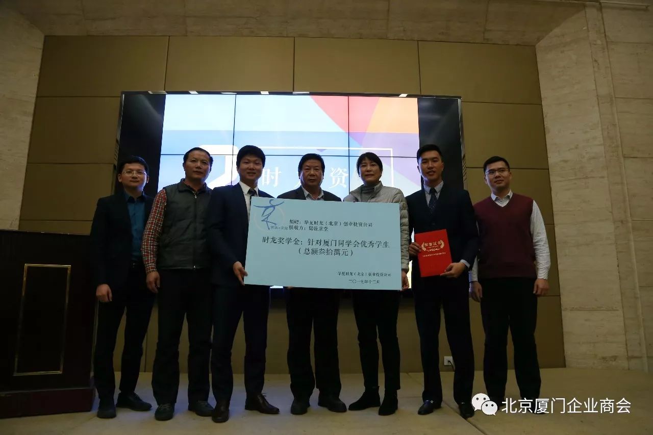 随后,大会宣布我会常务副会长单位—时龙资本向鹭驻京堂捐赠30万元,时龙资本创始合伙人林水源和林天祥共同成立“时龙资本奖学金”。时龙资本创始合伙人林水源表示,成立时龙资本奖学金是同学会的大事也是北京厦门企业商会的大事,作为鹭驻京堂第一波参与者,特别感恩,我们从厦门来到北京学习、创业,一步步发展起来,想表达传递给大家的就是拼搏创新的精神以及乡情抱团的情怀。在十年之际,设立时龙奖学金,只是一个开始,在北京厦门企业商会蒋清林会长的带领下,未来将会有更多优秀的企业家参与进来 。