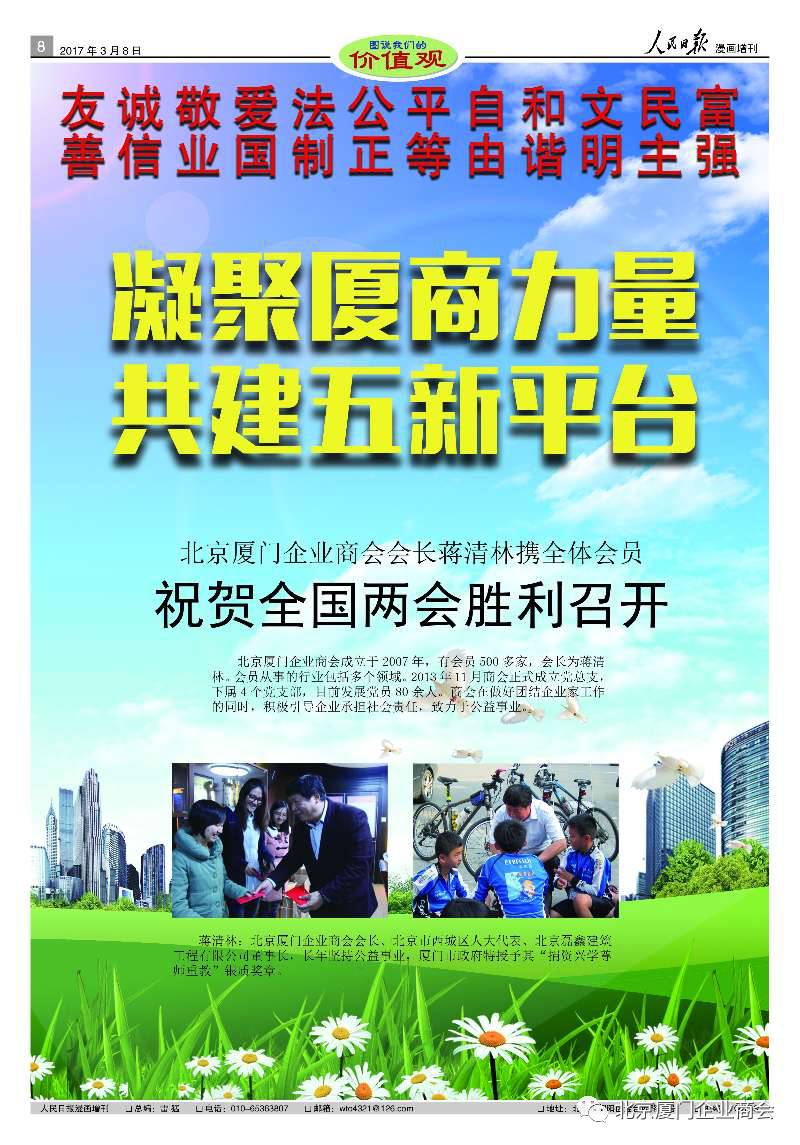 北京厦门企业商会会长蒋清林携全体会员 祝贺全国两会胜利召开-凯发k8天生赢家