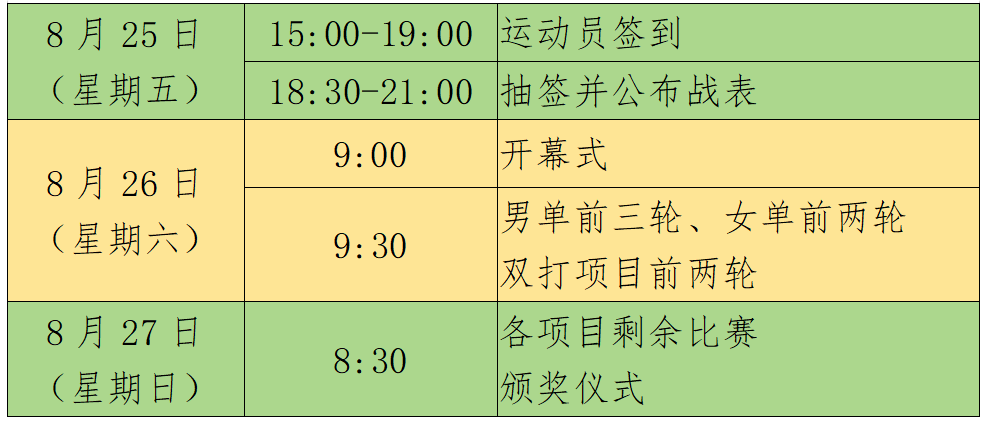赛事将于8月26日-27日