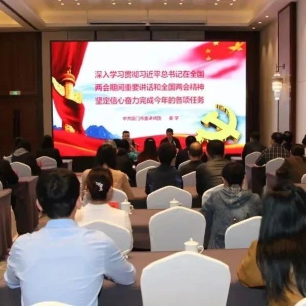 3月21日上午,厦门市驻京办党组组织全国两会精神宣讲会暨党组理论学习中心组(扩大)学习会。中共厦门市委讲师团教研室主任秦学应邀作《深入学习贯彻习近平总书记在全国两会期间的重要讲话和全国两会精神 坚定信心奋力完成今年各项任务》专题宣讲。宣讲会由厦门市驻京办党组书记、主任陈锡彬主持,驻京办全体党员干部职工和厦门大厦颐豪酒店党员、北京厦门企业商会党支部分党员共50余人参加。 秦学主任围绕授课主题,从沉