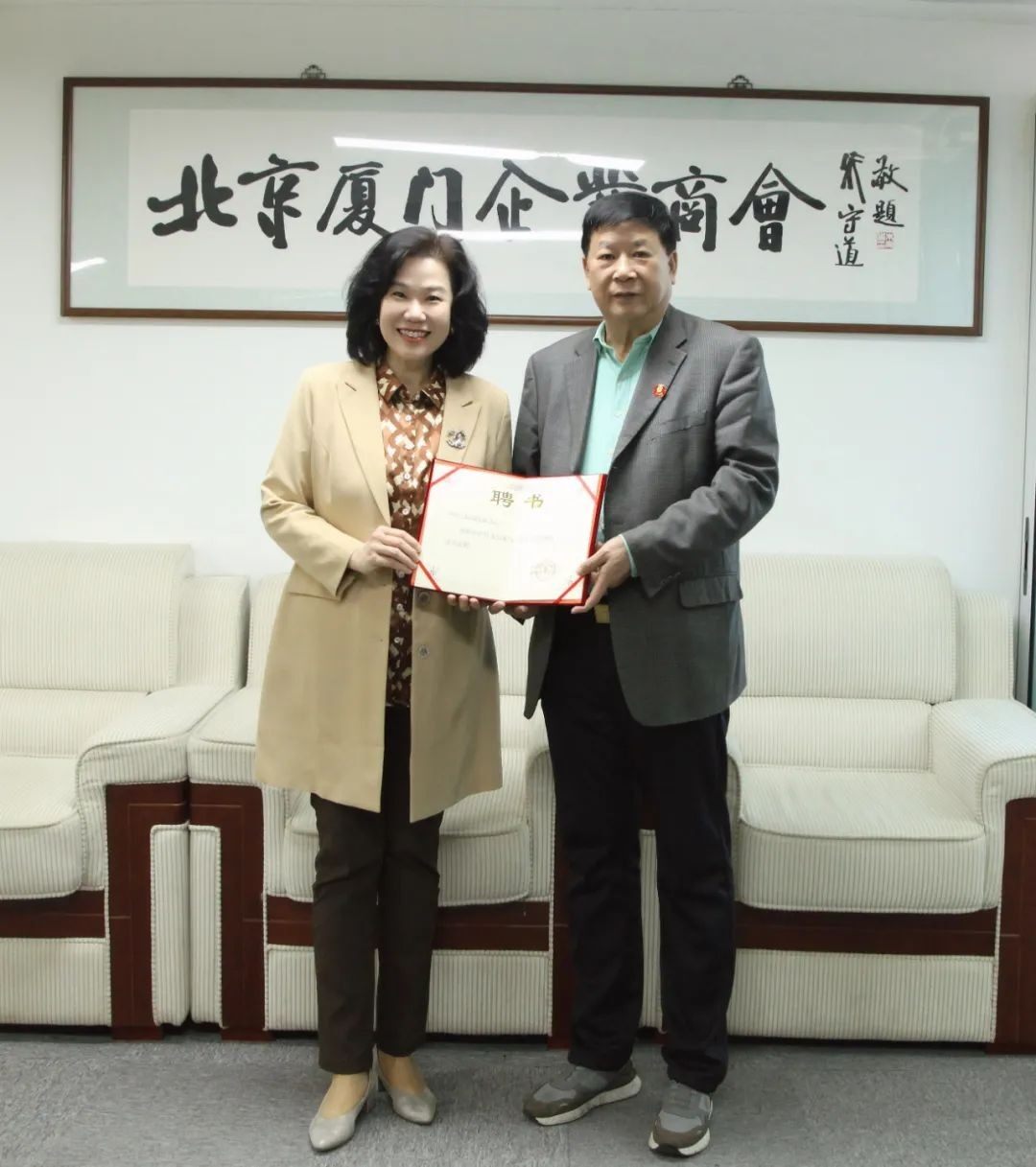 3月19日上午,商会聘请国际著名钢琴家克劳迪娅·杨担任商会音乐顾问一职。会长蒋清林代表北京厦门企业商会为克劳迪娅·杨颁发聘书,北京市异地商会第一联合党委专职副书记、北京福建企业总商会党委副书记李修亮、北京厦门企业商会党支部书记黄旭东、党支部副书记、常务副会长兼秘书长林水源、执行副秘书长韩雪等一同参加受聘仪式。