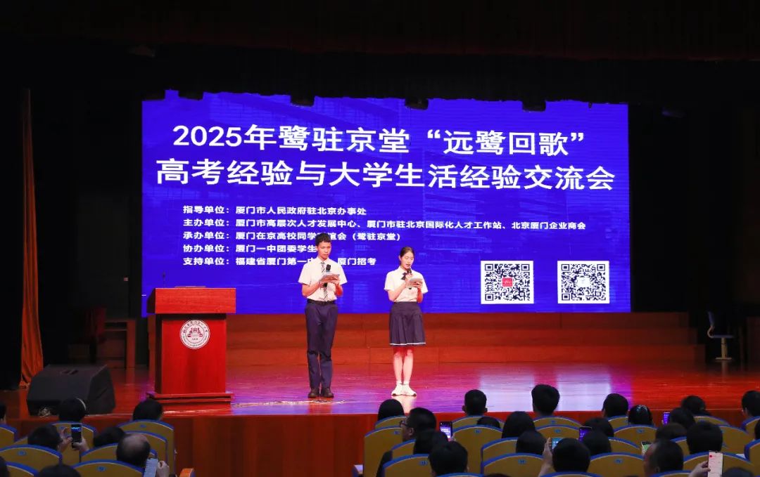 2025年8月9日—10日,第十九届“远鹭回歌”高考经验与大学生活经验交流会先后在厦门一中、同安一中顺利举行。本次活动由厦门市人民政府驻北京办事处指导,厦门市驻北京国际化人才工作站、厦门市高层次人才发展中心、北京厦门企业商会主办,厦门在京高校同学联谊会(简称“鹭驻京堂”)承办,福建省厦门第一中学和福建省同安第一中学协办,聚焦高考经验分享、高校专业培养体系解读及大学学习生活规划等核心内容,为厦门学子搭建了一场干货满满的成长交流平台。